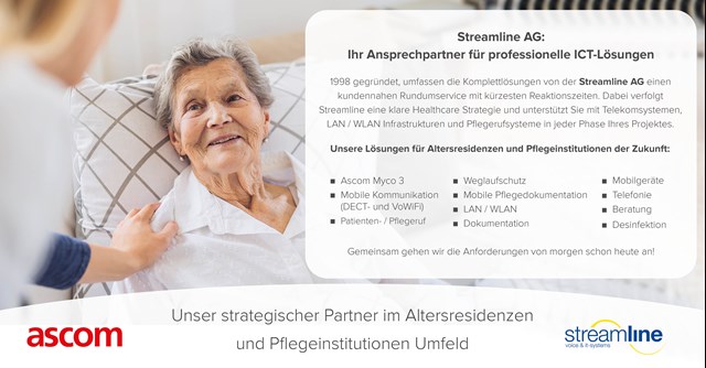Mit einem klaren Fokus auf den Healthcare-Bereich ist Streamline der ideale Partner für einen kundennahen 360° Service, wenn es um professionelle ICT-Lösungen geht. Die Streamline Healthcare Services beinhalten dabei Telekomsysteme, LAN / WLAN Infrastrukturen und Pflegerufsysteme, und zusammen mit ihren Spezialisten und Partnern werden Sie in jeder Phase Ihres Projektes kompetent unterstützt.