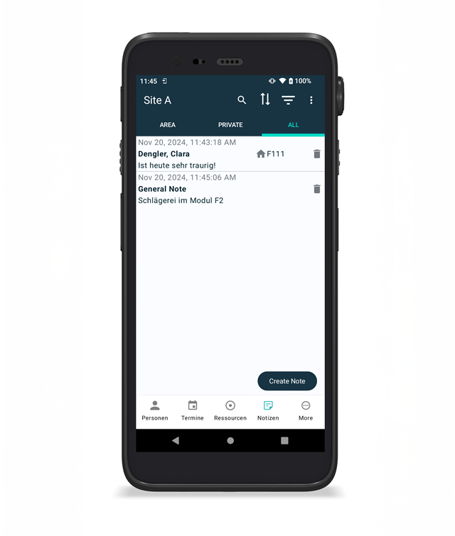 Notizen jederzeit möglich: Fügen Sie relevante Informationen direkt in der App hinzu – einfach und übersichtlich dokumentiert.