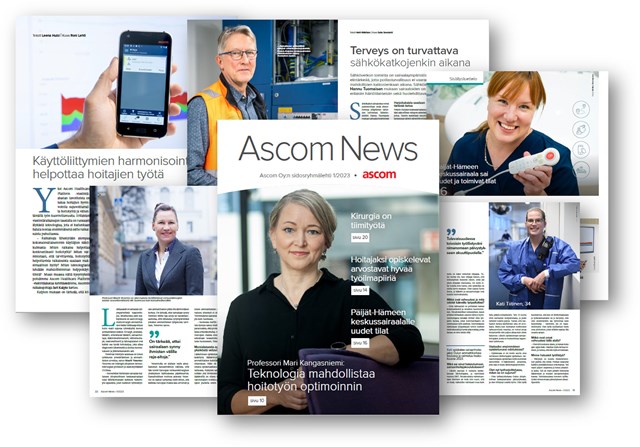 Ascom News -sidosryhmälehdestämme voit lukea muun muassa Helsingin yliopiston verisuonikirurgi Maarit Venermon, Sähkösuunnittelijat NSS ry:n toimitusjohtaja Markku Säkön ja Kontiolahden terveyskeskuksessa osastonhoitajana työskentelevän Saija Määttäsen haastattelut. Kerromme myös Päijät-Hämeen keskussairaalan uusien tilojen suunnitteluprosessista sekä esittelemme kahden opiskelijan mietteitä hoitotyöstä ja alaan kohdistuvista odotuksista.
