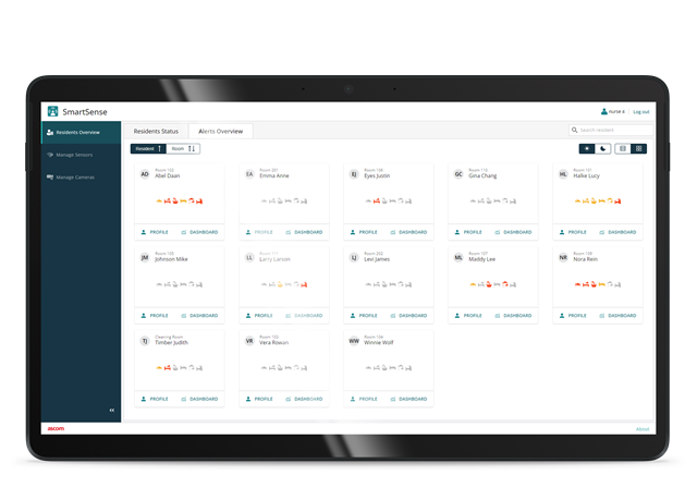 Comment garantir que les personnes vivant dans des établissements de soins de longue durée peuvent préserver leur mode de vie, tout en étant en sécurité ? Et que les professionnels de santé disposent de plus de temps pour prodiguer des soins qui comptent vraiment ? Le logiciel SmartSense permet à notre solution de télémonitoring d'activité d’offrir une surveillance discrète avec une gamme de capteurs pour créer des profils de résidents personnels.